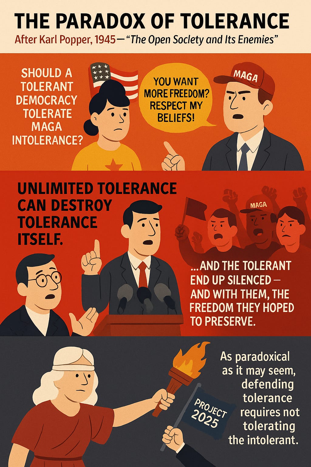 In 1945, as the world emerged from fascism’s shadow, philosopher Karl Popper articulated a truth that democracy keeps forgetting: tolerance, if made absolute, becomes its own undoing. The paradox he described was not an abstraction but a survival manual for open societies. Today, as America once again wrestles with movements that mistake cruelty for conviction, Popper’s words return with new urgency—and demand our full attention.